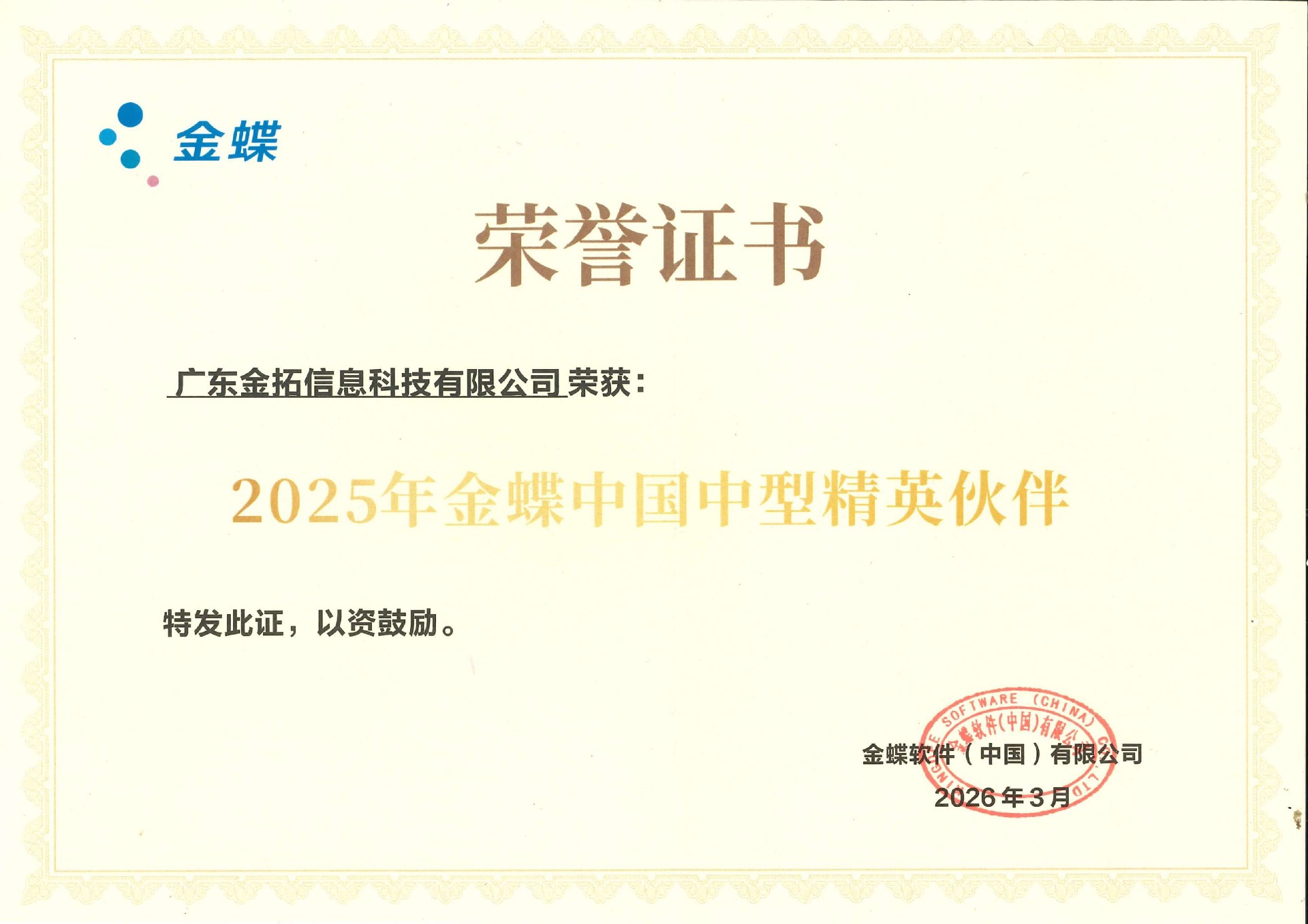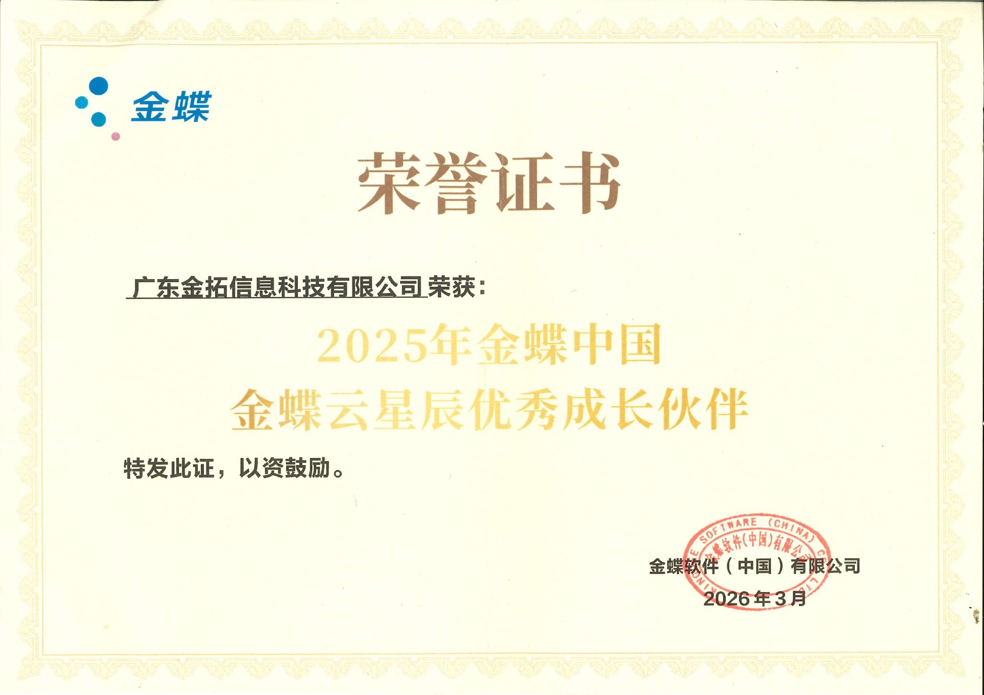 在广东东莞,本地化服务尤为关键。广东金拓信息科技有限公司凭借专业实力,荣获金蝶铂金级别授权,并先后摘得“精英伙伴”“卓越领航伙伴”等多项荣誉,实力与口碑双认证。